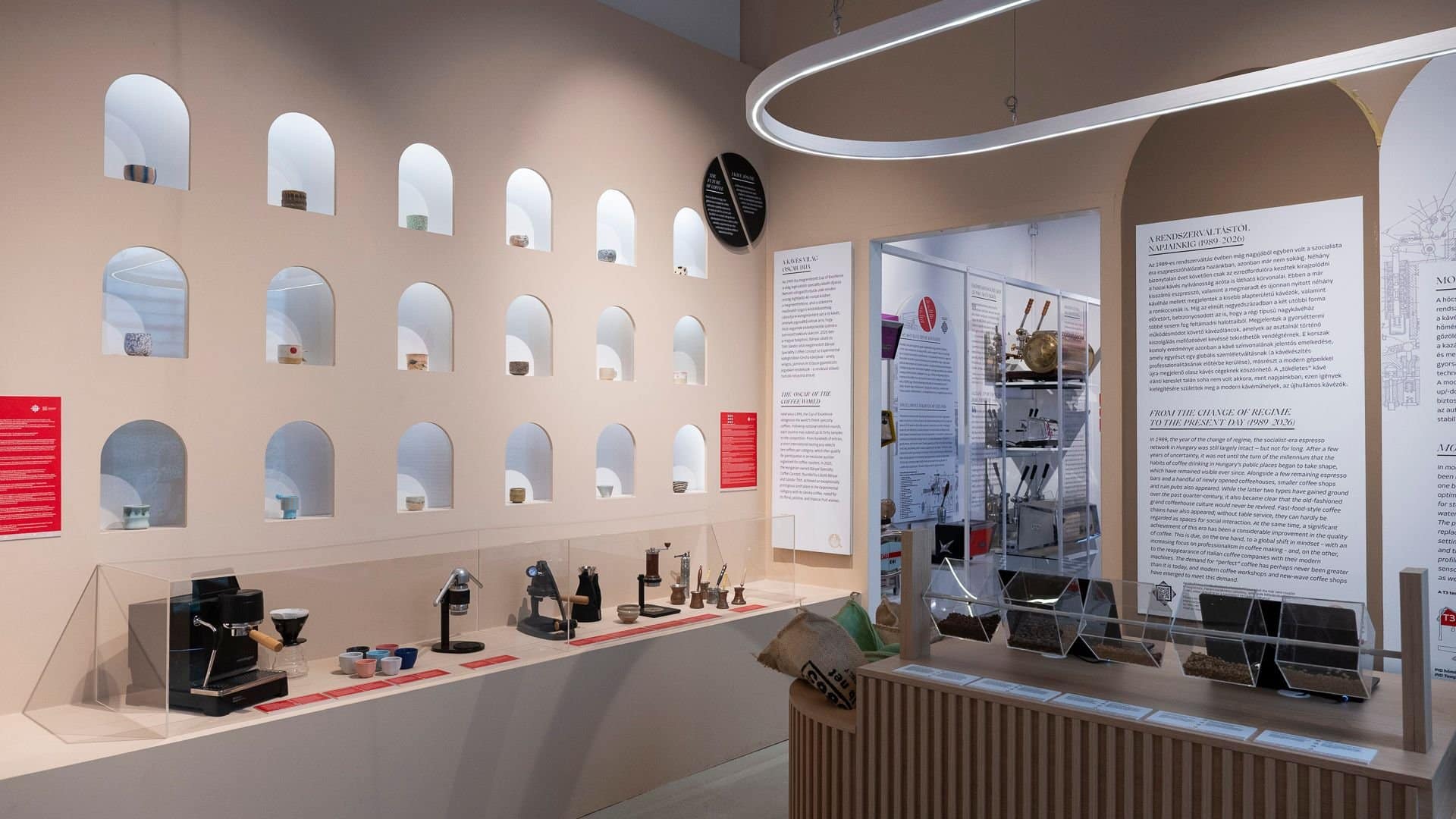 A látogatók kávéárusok, kereskedők, rikkancsok, irodalmárok és modern baristák szerepét is kipróbálhatják hangfelvételek, ikonikus filmrészletek, anekdoták, játékok és interaktív elemek segítségével – több tucat kávégép és műtárgy között, korhűen berendezett terekben.
